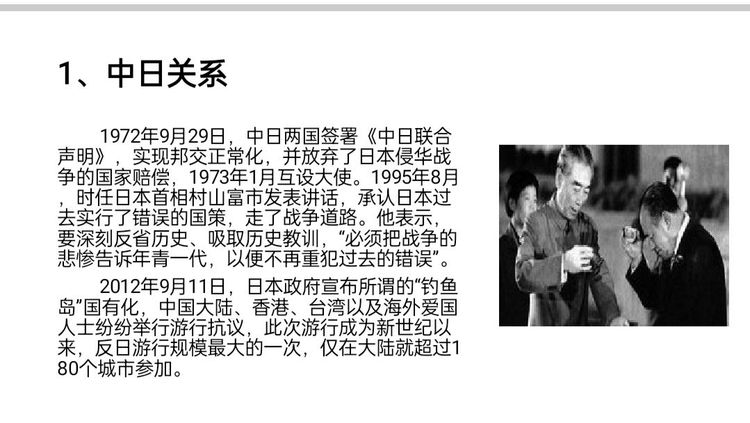 历史特色课堂纵观古今中外,李利芝老师的《日本》专题特色课带领学生了解日本的政治、军事、文化、外交各方面的发展历史,分析中日关系的发展变化,拓宽了视野,提升了学生的历史素养和大局意识。