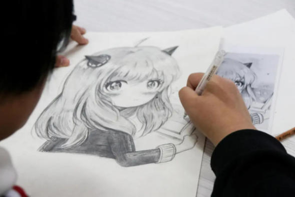 画板整齐排列,大家在老师的讲解下,学习线条运用、明暗塑造、透视比例等基础技巧,从漫画临摹到静物风景,一步步感受不一样的绘画魅力。大家凝神观察物体形态,细心勾勒轮廓,用心刻画光影细节,将眼中的生活美好诉诸笔端。