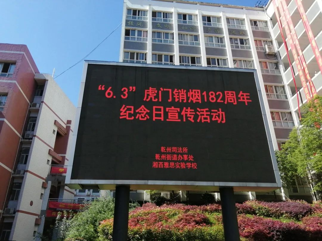 为纪念“6.3”虎门销烟182周年纪念日,传承虎门销烟精神,增强学生禁毒意识,提高学生识毒、防毒、拒毒能力,创建和谐平安校园,6月3日上午,湘西雅思实验学校初中部特邀乾州街道办事处、乾州司法所来我校开展“6.3”虎门销烟纪念日暨防范新型毒品对青少年危害禁毒主题宣传活动。