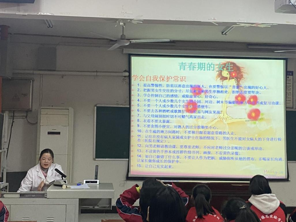 我校初一女生安全教育及青春期生理卫生健康知识讲座(陈芳)