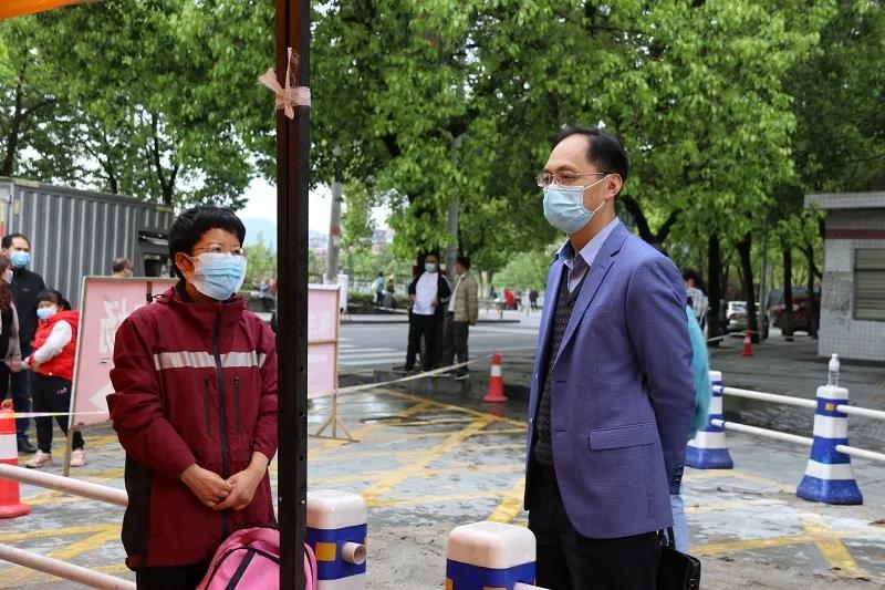 开学现场,市疾控中心领导也莅临督导检查工作,查看学生返校情况。市公安局、卫健局、市执法局、市交警队等单位工作人员协助交通安全疏导、应急处理等开学工作,全天为我校复学保驾护航。股东单位州民中书记郑英滨莅临指导工作。执行校长麻二平及我校全体领导班子成员、各部门负责人全天亲守现场,进行指挥。