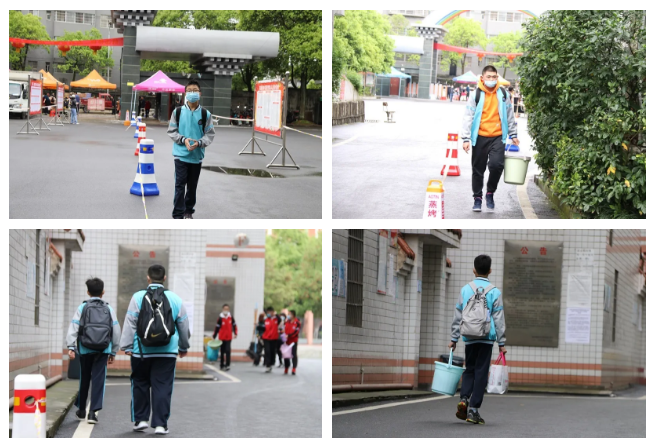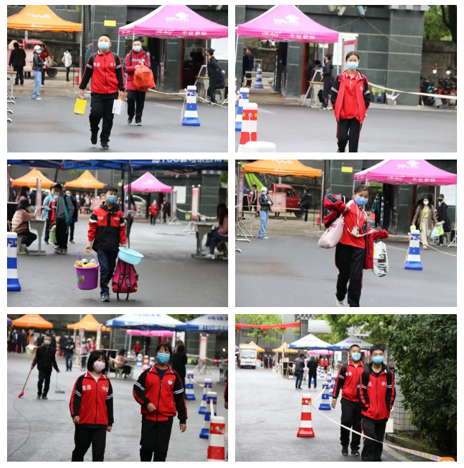 本次报到32个班级按每小时4个班分批次有序进行。为做好疫情防控工作和迎接全体学子安全返校,学校在校门口、寝室、教室、食堂等领域共设置了四道关卡,分别对学生物品进行消毒、三次体温测量与手部消毒、对名对号有序就餐、入寝。