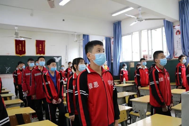 典礼伊始,全体师生在教室肃立,在国歌声中举行了庄严的升旗仪式。