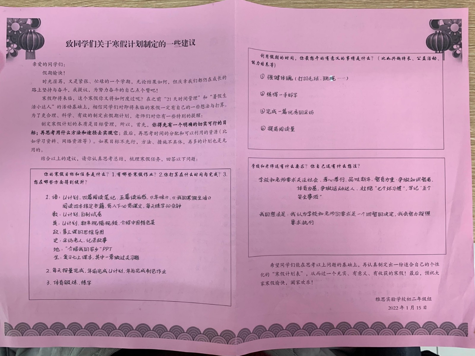 为进一步落实国家“双减”政策,践行“五育并举”的教育方针,秉承雅思中学特色办学理念,以立德、增智、强体、育美为主题,湘西雅思实验学校各学科组教师针对学生的实际情况,设计了多姿多彩、各具特色的寒假作业,让寒假有了崭新的打开方式!
