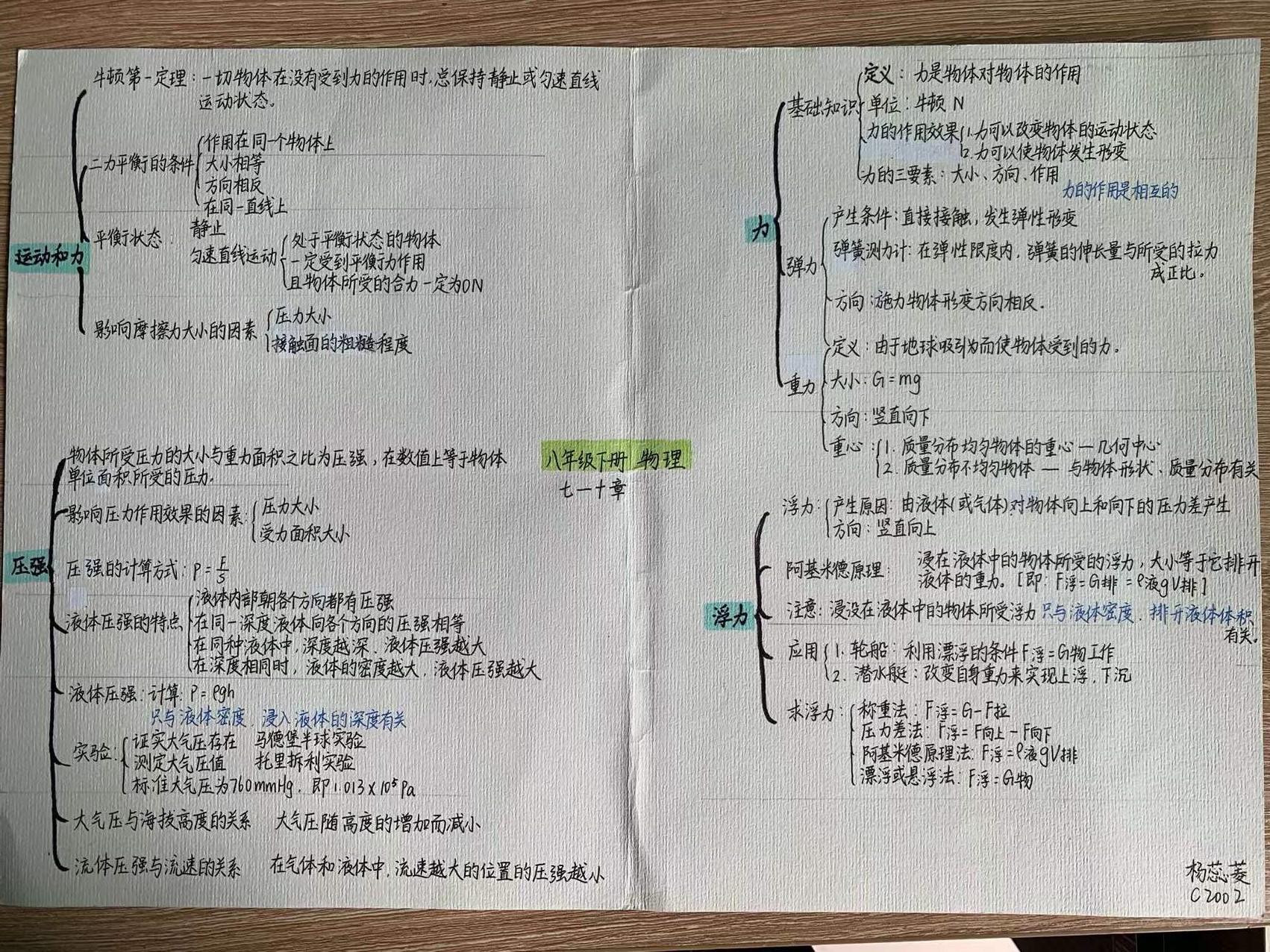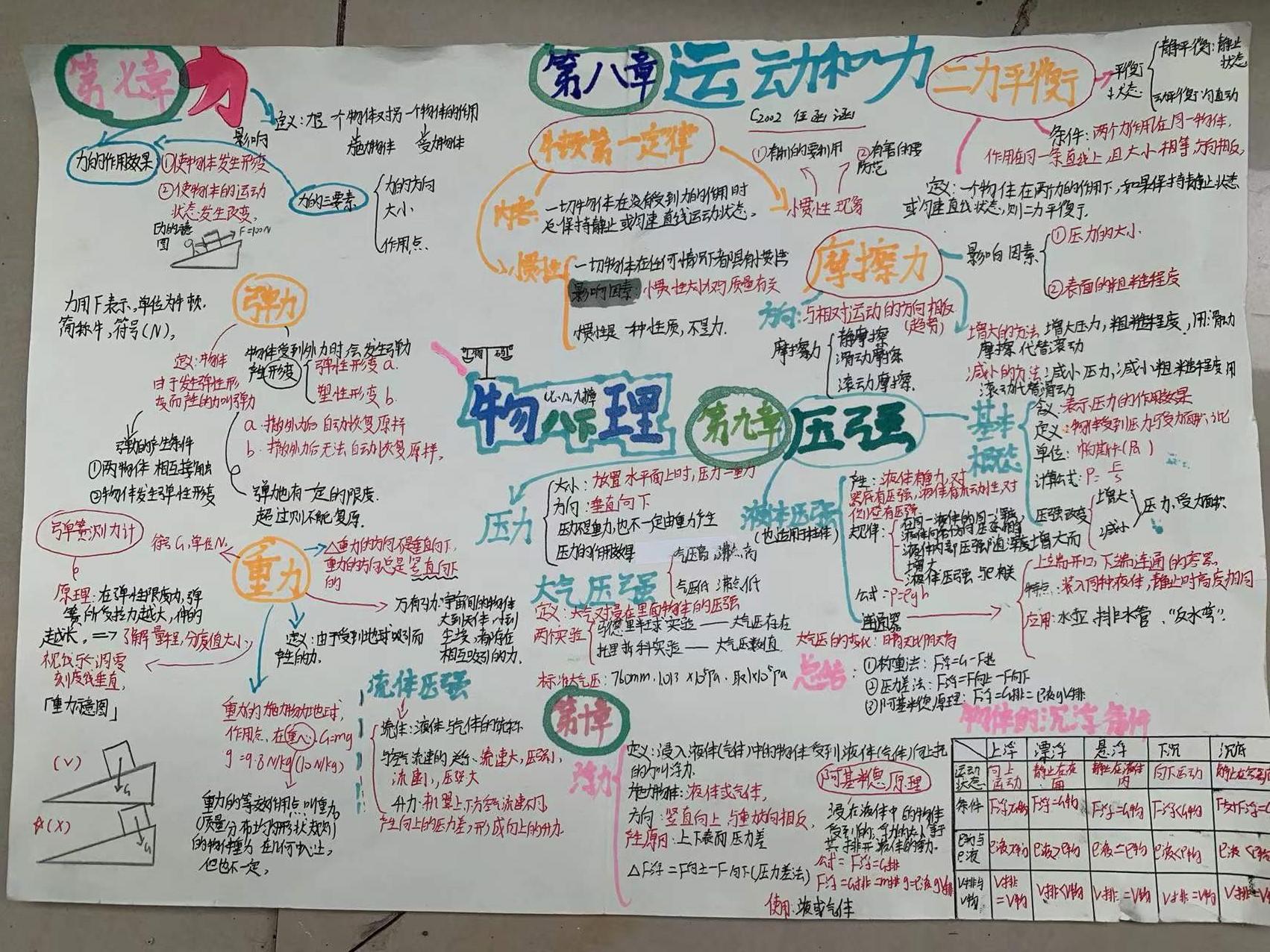 思维导图是有效的思维模式,物理、政治学科让孩子们归纳总结所学知识点,自主绘画思维“地图”。