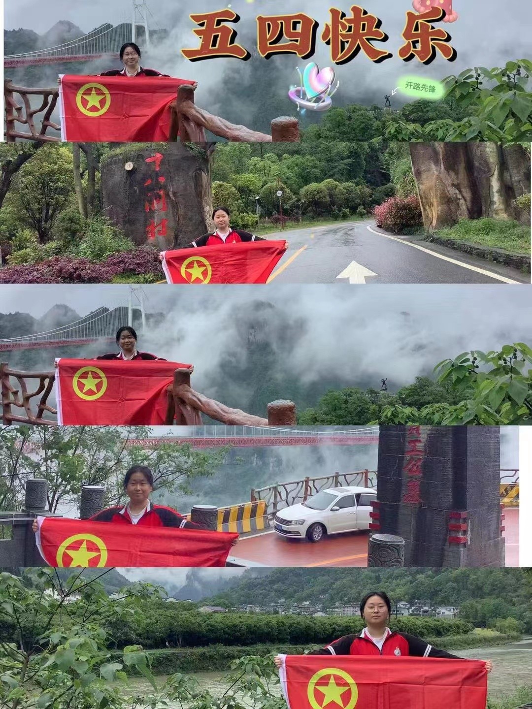 在“二十大”即将来临之际,恰逢建团一百周年,吉首市雅思实验学校举行“喜迎二十大,永远跟党走,奋进新征程”主题团日活动。团员们利用“五一”假期在当地标志性建筑前打卡,在“双减”政策下提高团员社会实践能力。让雅思红把国旗红、党旗红、团旗红和团徽红在湘西州的各个地方绽放。展示出生逢盛世,肩负重任的我辈青年学子的民族自豪感,也鼓舞着大家为以后能更好的为建成社会主义现代化强国贡献力量而努力。