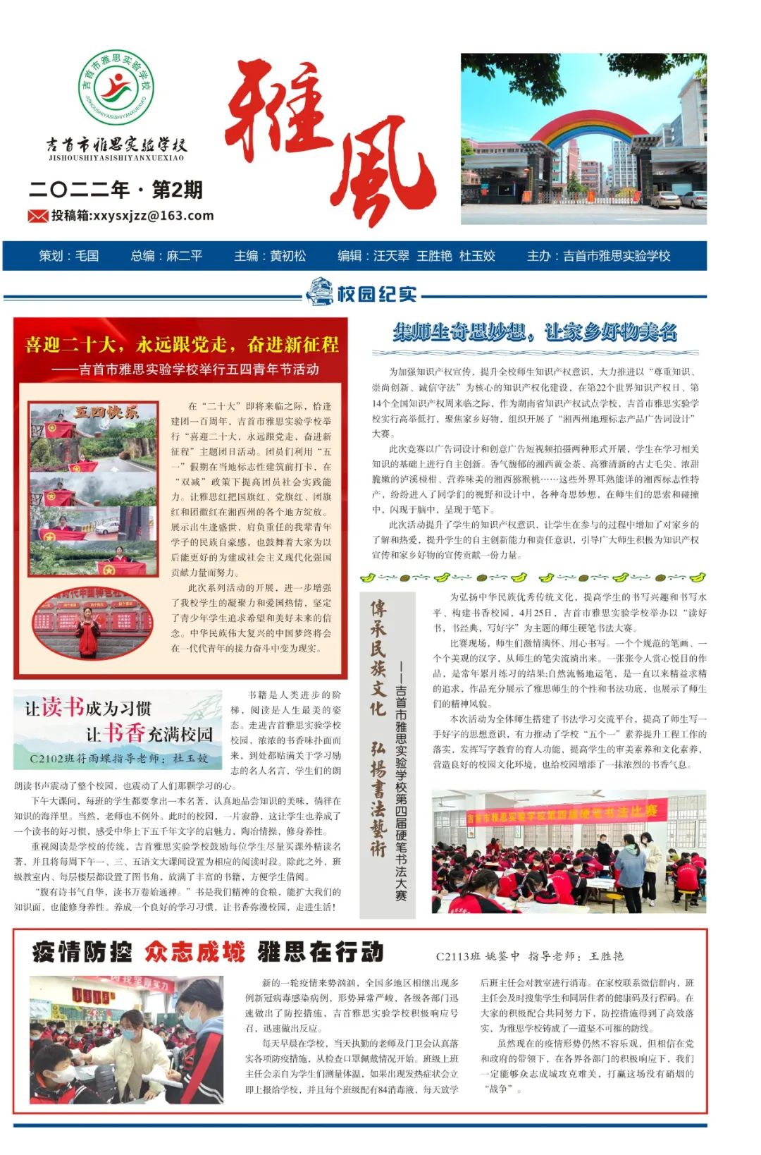 《雅风》校刊第二期与大家见面啦!随着校刊的创立,雅思多了一个记录学生成长的空间,多了一个展示师生风采的窗口,多了一个传递学校精神的纽带,多了一个交流思想的平台。