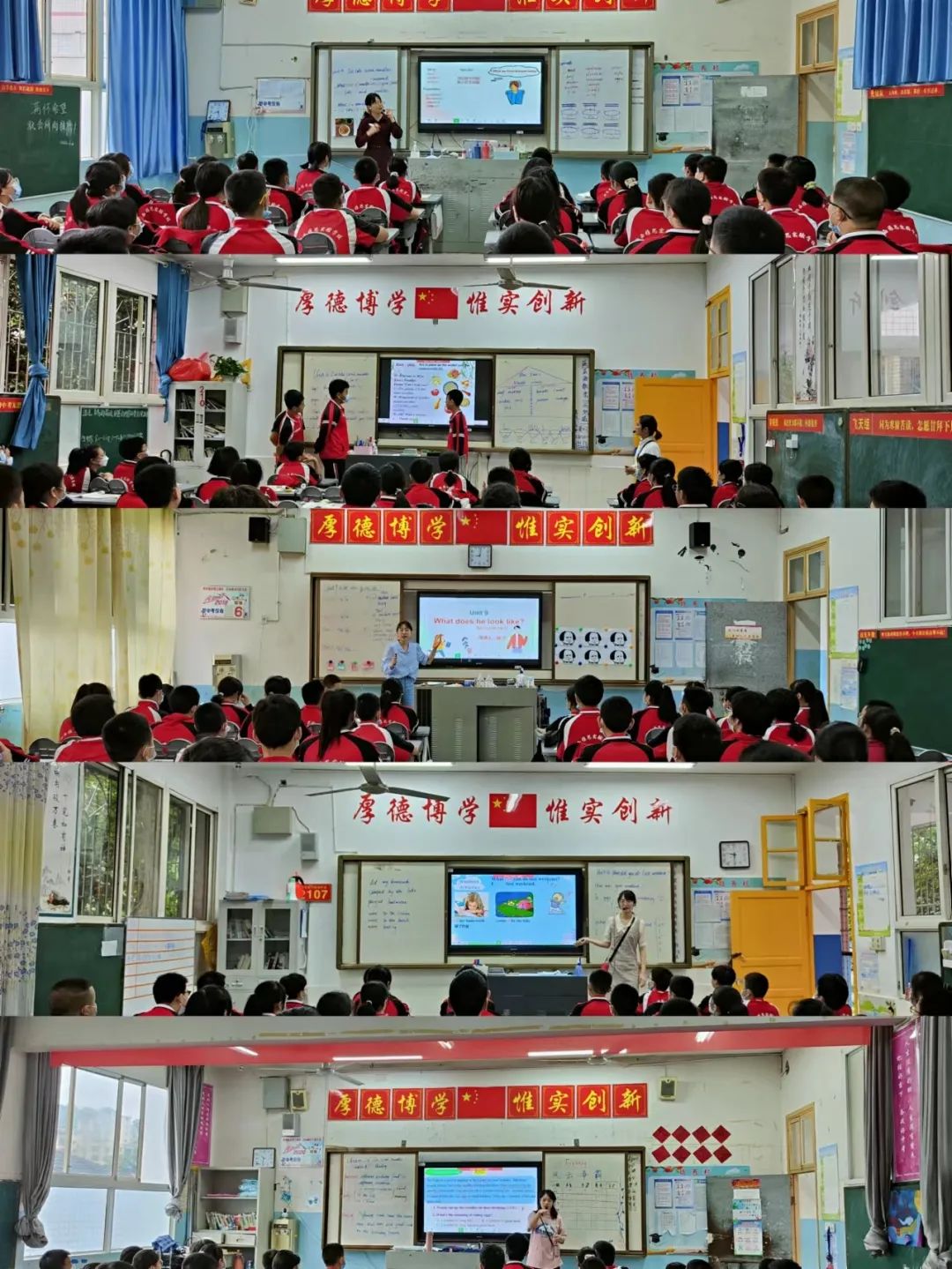 在授课活动中,语文教师们通过听读、朗读、品读带领学生进入课文。教师们以饱满的热情感染学生,以顿挫的朗读激发学生的兴趣。课堂中的小组讨论、创意板书、课文总结、课后写作都引起学生的学习热情。在朗朗的读书声和热烈的讨论中,师生共同走向文本的纵深层。