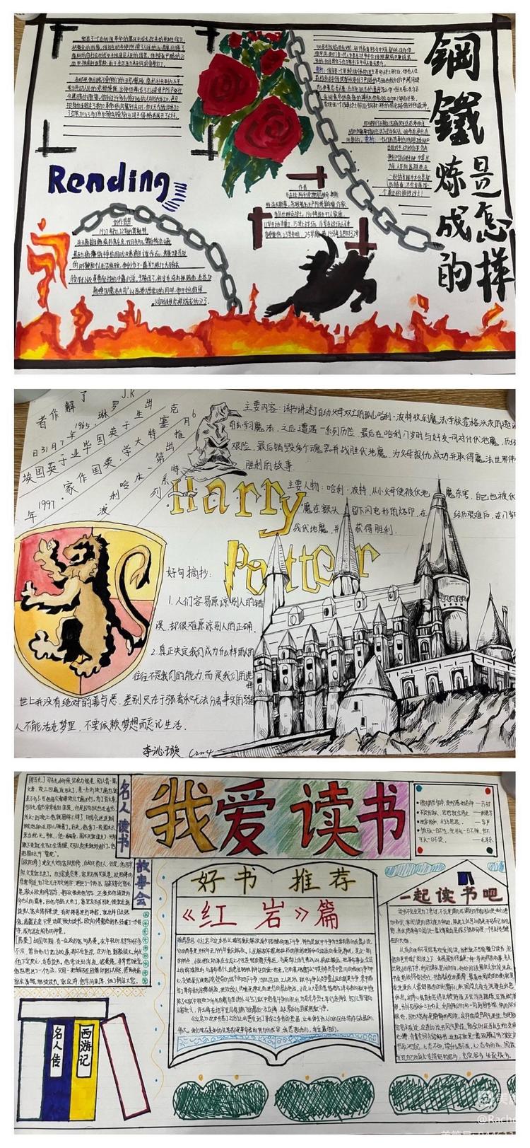 巧手绘名著,书香润校园。一部部经典名著在同学们的巧手下浓缩成精华。一张张色彩丰富、创意无限的手抄报,充分体现了同学们的领悟能力和审美能力。相信通过名著阅读手抄报活动,同学们能够爱上阅读,在书海中找到心灵的栖息地,在经典中找到属于自己的一缕阳光!
