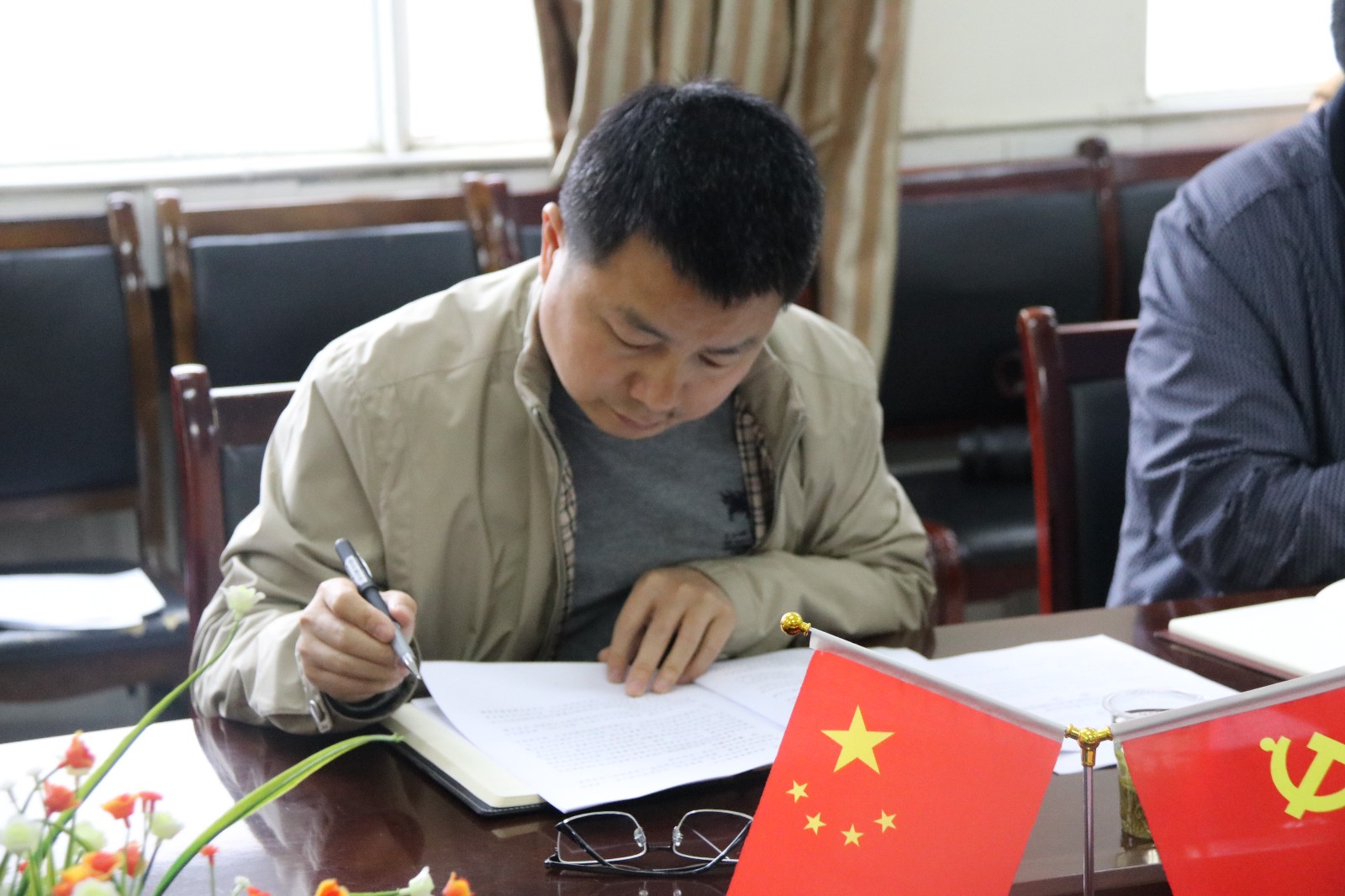 文茗一书记认真查看资料