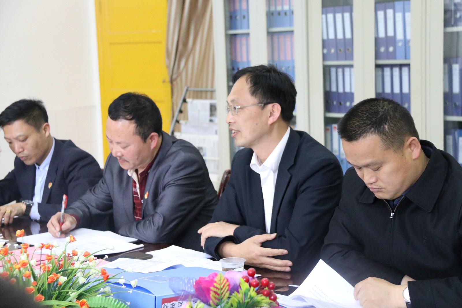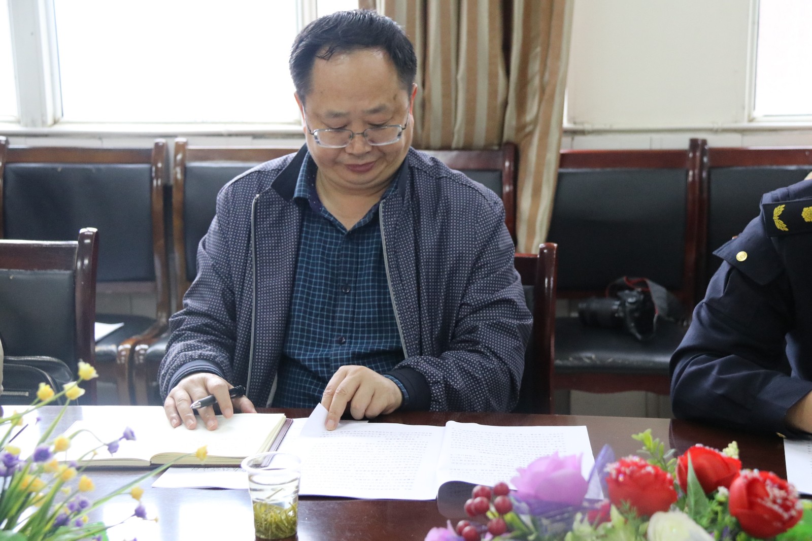 田康局长认真查阅资料并发言
