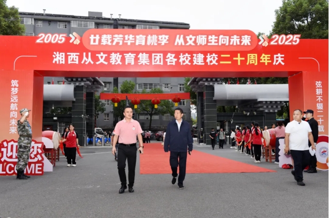 湘西州人大副主任田勇、湘西州政府副州长高湘文、湘西州教体局局长张文英、副局长刘修洪、副局长王耀宗、湘西州民族中学书记马继业、湘西州民办教育协会会长王斌、吉首市市政府副市长余琛、吉首市民办教育协会书记刘家富、吉首市教体局局长陈凯、吉首市发改局局长张强、吉首市教体局副局长谷成达、副局长张猛等州市领导、湘西从文教育董事长刘晓林、湘西雅思实验学校董事长刘汉勇、谷韵民族小学董事长许洁、历任校长、从文师生及家长、各界校友齐聚充满节日气息的校园,共忆二十载办学岁月,共贺母校二十华诞,共话教育发展未来,为学校20年办学征程书写下浓墨重彩的一笔。