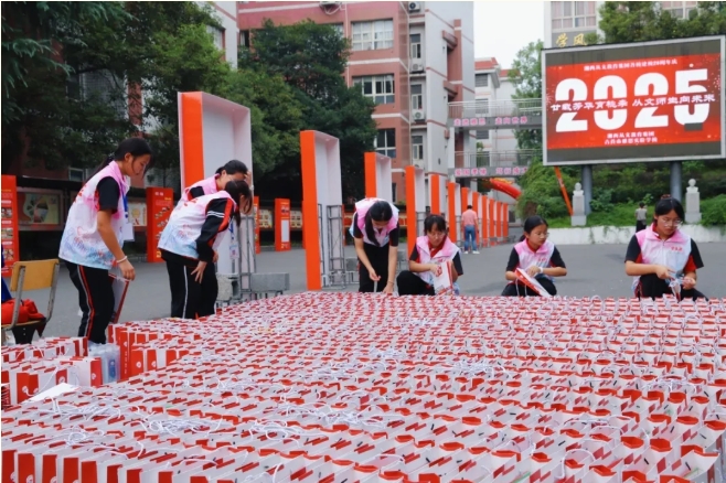 在迎宾队伍中,身着统一志愿服的学生志愿者格外亮眼。他们热情的微笑着为家长、校友递上校庆的纪念品让每一位到场者都感受到了母校的温暖与用心,成为校庆伊始最动人的“开场白”。