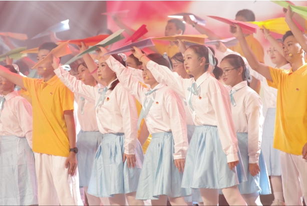 谷韵民族小学的孩子们带来童真满满的舞蹈《我们是鲜花》,民族风情的歌舞《德雄黛黛迎客歌》,灵动的舞姿、清亮的歌声展现着童年的快乐。