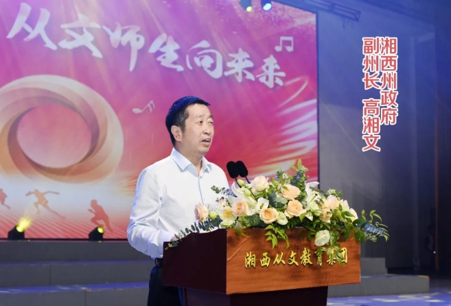 湘西州政府副州长高湘文和湘西州民办协会会长王斌致辞对湘西从文教育集团各校20年的办学成果给予高度评价,同时寄语学校以校庆为新起点,继续深耕教育领域,培育更多优秀人才。