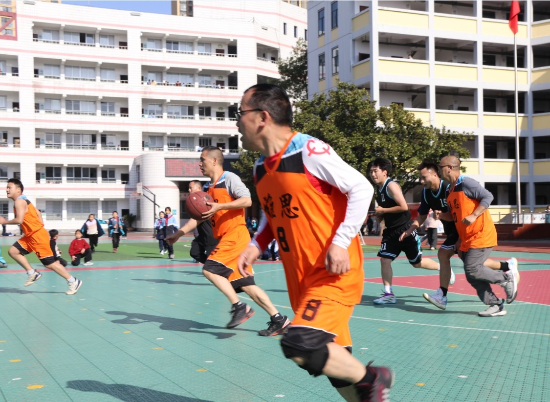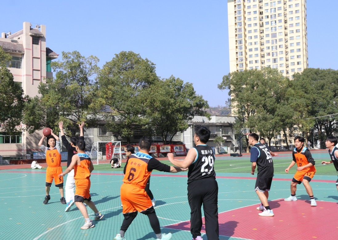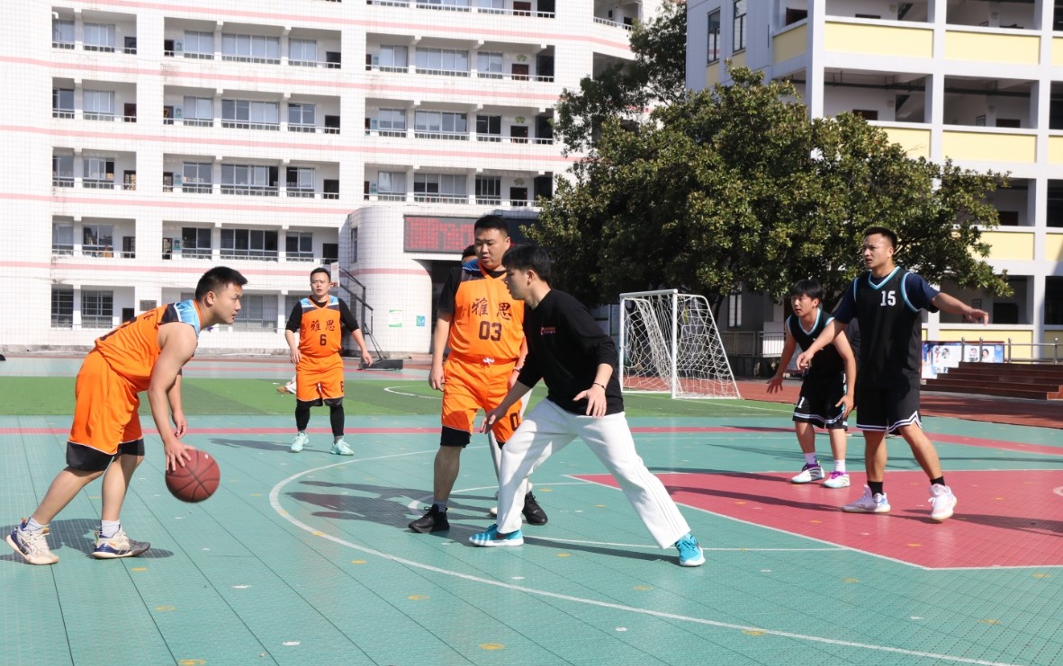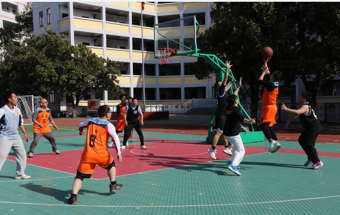 平日里在讲台前温文尔雅的老师们,此刻个个化身“灌篮高手”,每一个动作都干脆利落。奔跑的身影、挥洒的汗水,在暖阳下闪着光。运球突破、精准传球、奋力投篮,每一个动作都彰显着拼搏的姿态;默契的配合、巧妙的攻防,尽显团队协作的力量。场边不时传来阵阵呐喊助威声,欢声笑语回荡在校园上空。