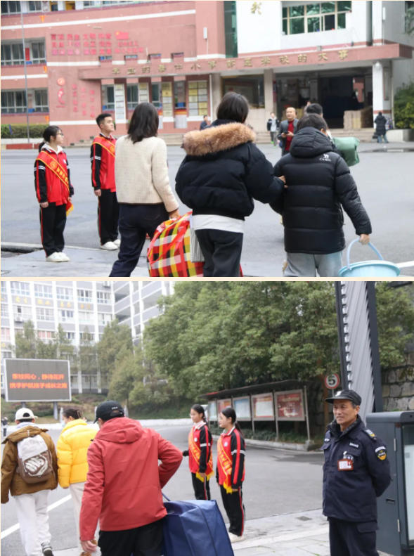 开学清晨,校园门口秩序井然、暖意融融。交警同志们早早的化身平安守护者,疏导车流、维护秩序,为学子们筑牢交通安全防线;学校保安精神抖擞、严守岗位,学生会志愿者列队两旁,以青春热情夹道欢迎每一位归来的同学。校园电子大屏上“家校同心,静待花开,携手护航孩子成长”的标语格外醒目,传递着学校与家庭携手育人的温暖初心。