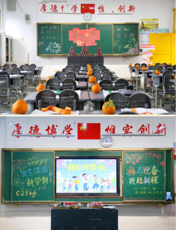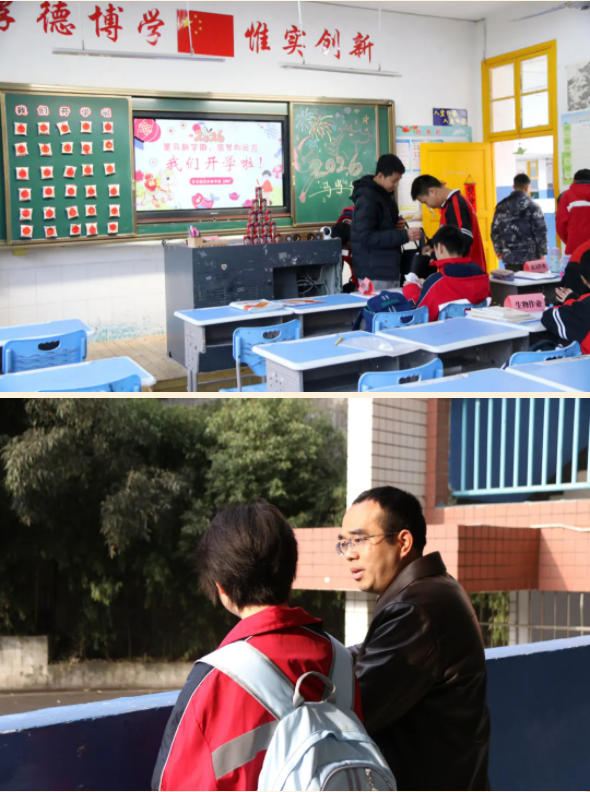 走进教学楼,各班教室早已被老师们精心布置一新,整洁明亮的环境、温馨雅致的装饰、整齐摆放的课本,处处藏着老师们的用心与期许。晨曦之中,班主任们早早等候在走廊,迎着初升朝阳与学生亲切交谈,细致询问假期生活,耐心叮嘱新学期注意事项,用温柔话语帮助同学们快速调整状态,融入校园生活。