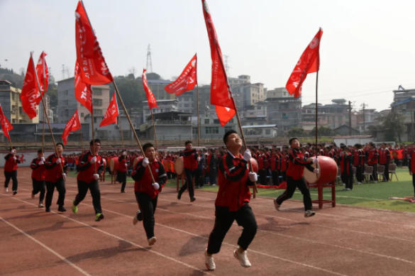 大会伊始,激昂的苗鼓声划破校园宁静,初三学子们以整齐的跑操阵容入场。他们步伐铿锵、口号嘹亮,青春的朝气与必胜的信念在晨光中激荡,瞬间点燃全场热情。