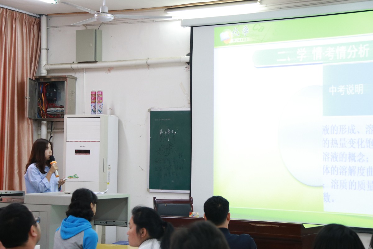 在教学经验交流会环节,湘西雅思实验的张阳老师系统地介绍了我们学校结合学校当前课改要求开展的中考化学复习情况,并对后段复习迎考工作提出了一些个人建议,得到与会专家及老师的好评。